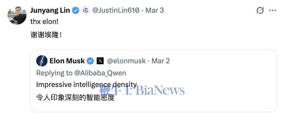 就在前一天,他还和团队并肩发布 Qwen3.5 小尺寸模型系列;甚至连 Elon Musk 都在 X 上点赞,他礼貌致谢。谁也没想到,那竟成了他在千问的“最后一次营业”。
