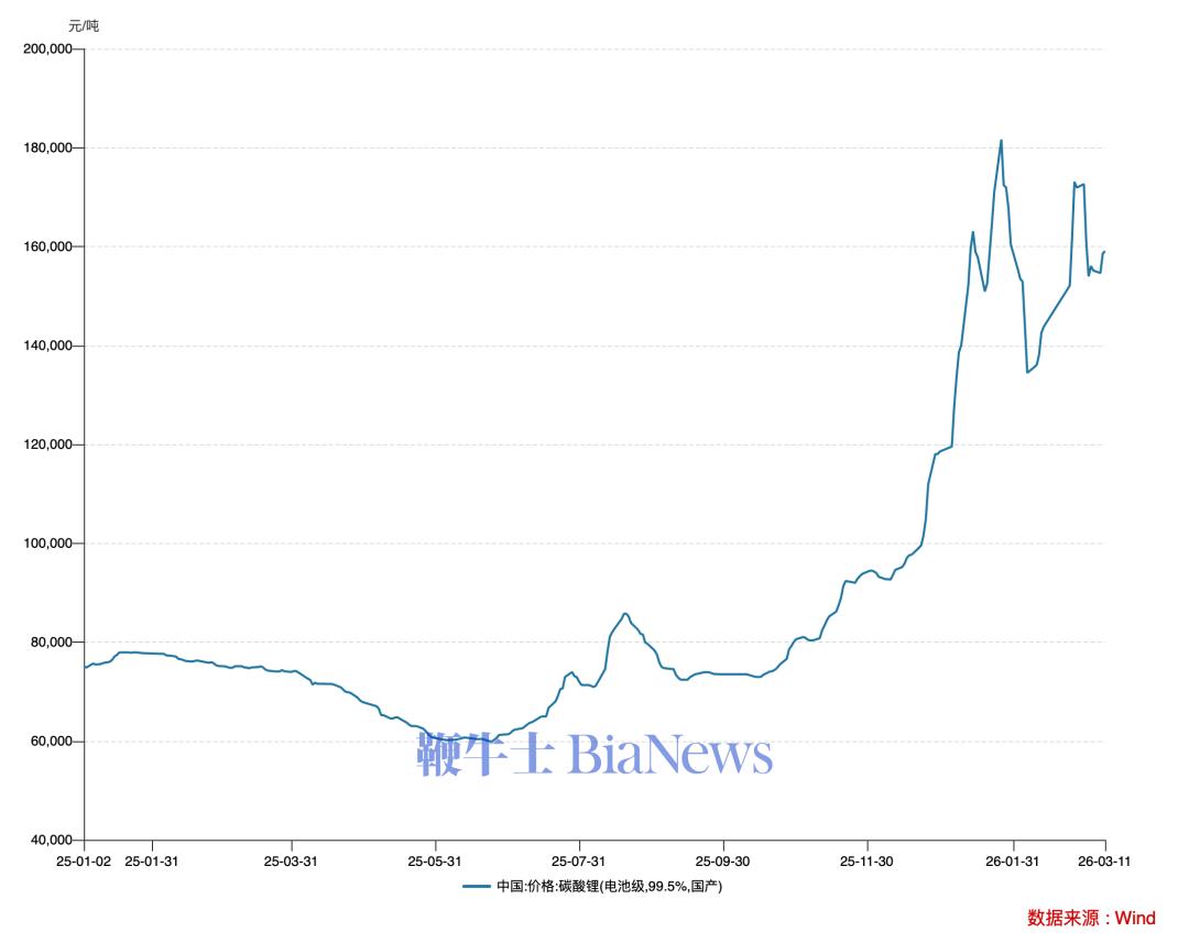 这不是宁德时代第一次跑赢整车厂,但差距仍在拉大。2025年,宁德时代毛利率达26.27%,是汽车行业的6.4倍,接近回到2021年的历史峰值;净利润率同步攀升至18.12%,较2021年的13.70%提升4.4个百分点。 从收入结构看,动力电池仍是压舱石,贡献3165亿元,占总营收74.7%;储能电池624亿元,占比14.7%;电池材料及回收219亿元。动力电池增速最快,同比增长25%,储能电池毛利率最高,达26.71%,超过动力电池的23.84%。 在业绩拉升下,宁德时代的分红创下新纪录。根据公司年报,2025年全年累计派发现金分红约361亿元,占当年归母净利润的50%。具体方案为:除了年中的每10股派10.07元,还拟向全体股东每10股派发现金分红69.57元(含税)。 作为公司创始人,曾毓群凭借其间接持股22.45%的比例,仅2025年度的分红就将获得约81亿元的收益,超越大部分A股上市整车厂的净利润。 3月10日收盘,宁德时代(03750.HK)大涨9%,华尔街集体看好宁德时代,汇丰前海、野村、杰富瑞等主流机构集体上调目标价,维持买入评级。 碳酸锂波动,宁王如何穿越周期? 宁德时代是新能源行业增长的最大受益者。2025年全球新能源车销量增长21.5%,它的动力电池使用量增长31.7%,跑赢大盘十个点。 但更大的反差藏在另一组数据里:车卖得越多,整车厂越不赚钱。2025年,汽车行业利润率跌至4.1%,十年最低;宁德时代净利润722亿元,同比增长42%。 乘联分会发布的数据显示,2025年12月汽车行业收入1.16万亿元,同比下降0.8%;成本1.01万亿元,同比增加0.8%;利润0.02万亿元,同比下降57.4%; 电池、存储芯片成为汽车行业成本增长的主要来源。瑞银在1月发布的一则报告中测算,近3个月锂价上涨使单车成本增加约3800元,铜、铝涨价再推高1800元,合计单车成本通胀4000元-7000元。 乘联分会秘书长崔东树则分析称:“1月至12月总体工业企业单位成本增长压力大。碳酸锂价格翻一倍,大宗商品价格高位运行,中下游行业原料成本压力有所加大。”Wind数据显示,2025年6月碳酸锂触及低位5.99万元/吨,到年底翻倍至11.95万元/吨。今年以来继续走高,最高触及18万元/吨。 国内市场碳酸锂(电池级)价格走势 原材料价格翻倍,压力本该沿着产业链层层传导。但宁德时代的利润表上,几乎看不出波动。 碳酸锂涨价为何没有波及宁德时代?在3月9日晚间的业绩电话会议上,宁德时代董秘蒋理表示,相比上轮周期,这轮碳酸锂涨价幅度不算太大。同时,公司已有充分的应对经验,对公司的影响不大。同时,得益于前置布局,公司应对市场波动的能力显著增强,比以往更加游刃有余。 宁德时代一直推行的是原材料价格联动机制,即将电池产品的定价与材料成本直接挂钩,实现同步调整。这意味着原材料涨价的成本,可以在短时间内转嫁给客户。瑞银在研报中确认,宁德时代的价格传导机制有效,储能项目定价更是紧贴市场走势。 其次是在上游资源布局。宁德时代在江西宜春持有枧下窝锂矿,尽管2025年8月至11月因采矿证到期停产,但复产预期本身就在影响市场预期。 在2025年9月的复产工作会议上,宁德时代明确提出要在碳酸锂低价区间,通过梳理采矿、选矿、冶炼全流程,执行降本计划来保持成本竞争力。这意味着,当市场上碳酸锂价格波动时,拥有自己的矿能有效平滑成本,减少对外部高价材料的依赖。 从供应链、生产源头降本后,宁德时代的营业成本持续优化。财报数据显示,2025年,直接材料占营业成本的比重从76.48%降至71.79%。 根据SNE Research统计,2025年,宁德时代全球动力电池使用量市占率提升1.2个百分点至39.2%。连续九年排名第一,同时其海外市占率首次突破30%,储能连续5年出货全球第一。 宁德时代在产业链上的话语权还在增强。2025年末,宁德时代的应付账款2636亿元,应收账款1196亿元,两者相差超1400亿元。应收账款周转天数从2024年底的63.7天缩短至59.7天,回款速度加快;应付账款周转天数从2024年底的163天延长至168天,付款速度放慢。 这意味着,公司卖货收回现金的速度,远快于向供应商付款的速度。 客户也在抢着付定金。财报显示,宁德时代合同负债余额增至492亿元,比2024年末增加214亿元,增幅达77%。这意味着,大量客户通过预付款锁定2026年的产能。 瑞银在研报中称,公司自上一轮成本上涨以来已加强成本控制能力,管理层预期未来季度盈利不会出现大幅波动。为应付强劲的积压订单,今年将增加资本开支,加快产能扩张。 汽车行业的成本压力,短期内还看不到缓解的迹象。野村证券3月的一份报告指出,2026年上半年小米汽车业务将面临显著的利润率压力,主要原因是上游锂价飙升。 2月23日,瑞银发布研报高调看多碳酸锂。该机构认为,2026年全球锂市场将出现实质性短缺,需求增速正在持续超越供给增速,碳酸锂正进入第三轮涨价周期,并将2026年均价预期上调至17万元/吨,2027年上看20万元/吨。 产业链的压力传导到主机厂这里,就变成了利润缩减的现实。而宁德时代用自己的定价权、资源布局和成本控制,定义产业链“链主”地位。 储能拉升利润,多业务布局增长曲线 储能正在成为比动力电池更赚钱的生意。订单周期长、客户议价能力弱、技术壁垒高,让储能可以对冲动力电池的周期性波动。 财报显示,2025年,宁德时代锂电池销量661GWh,同比增长39%。其中动力电池销量541GWh,增长41.9%;储能电池销量121GWh,增长29.1%。更关键的是,储能电池毛利率26.71%,高于动力电池的23.84%。 但储能业务同样面临挑战。