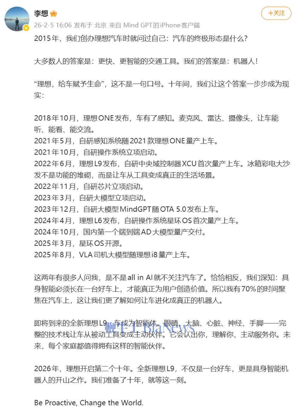 李想还对培养优秀店长提出了目标:“在今年汽车普遍不赚钱的大环境下,我们希望培养出来每年大量的收入超过百万的店长,让优秀店长的收入达到行业的三倍,也从销售能力层面确保公司订单量和交付量稳定。”对此,马东辉回应此前关于网传“理想汽车计划在2026年关闭约100家门店”为不实消息。马东辉表示,理想只是对一些效益不佳的门店进行关闭,属于正常范围。他也进一步介绍了理想推行的门店合伙人机制,希望走出一条具有理想特色的经营模式。一方面坚持直营,另一方面下放经营决策权和利润分享权,力争今年三季度能够看到销售经营的改善和提升。今年第二季度理想将发布全新理想L9系列,新车将标配800V平台和5C超充技术,并搭载新一代全栈自研的增程3.0系统,理想还将全球首发AI智能机油保养系统,实现“3年/3万公里”的超长保养周期。