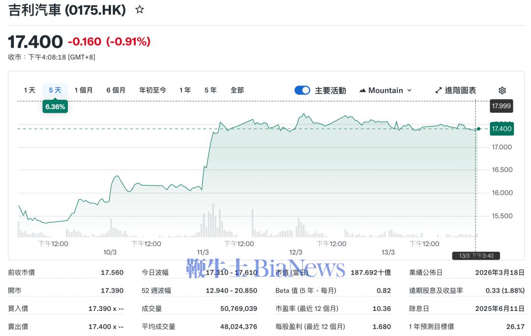 从亏损到盈利的跨越,蔚来的转变主要得益于三大因素。 首先是销量的持续攀升,为营收增长奠定了坚实基础;其次是产品组合的优化,带动汽车毛利率显著提升;最后是全面推行的降本增效措施,有效改善了公司的盈利结构。这一盈利拐点的出现,无疑给市场注入了一剂强心针,也让投资者对蔚来的未来发展充满信心。 蔚来股价和市值的变化,只是近年来港股市场整车上市企业股价和市值剧烈波动的一个缩影。 进入2026年以来,港股整车企业的股价和市值表现呈现出明显的分化态势。数据显示,理想汽车、蔚来、比亚迪股份的股价均出现不同程度的上涨,而长城汽车、广汽集团、小鹏汽车等则遭遇不同程度的下跌。 将时间维度拉长来看,以“蔚小理”为代表的新势力车企,其市值波动更为剧烈。 2021年底,小鹏汽车市值超过3000亿港元,领先于当时市值约2500亿港元的理想汽车;但到了2022年底,理想汽车实现市值反超,达到1600亿港元左右,而小鹏汽车市值则降至不足700亿港元,理想汽车市值是小鹏汽车的2倍以上。 2023年成为理想汽车的“高光时刻”,截至当年年底,其市值超过3100亿港元,是同期蔚来市值(不足1300亿港元)的2倍以上,也是小鹏汽车市值(不足1100亿港元)的约3倍。 不过,从2024年开始,三家企业之间的市值差距逐渐缩小。到2025年底,小鹏汽车市值超过1500亿港元,而理想汽车市值不足1400亿港元,小鹏汽车实现了对理想汽车市值的阶段性反超。 面对股价问题,理想汽车内部也正在商讨方案进行“挽救”。据媒体报道,理想汽车CEO李想近期正在考虑回购理想汽车部分港股市场股份,购回比例以及总额等仍在讨论中。据理想官方回复称:“只是在讨论方案的可能性。” 截至2026年3月11日收盘,三家企业市值均超过1000亿港元。这种市值的此消彼长,反映出市场对新势力车企发展前景的预期在不断变化,也体现了新势力车企之间竞争的白热化。 而在已经上市的几家造车新势力里,公司回购股份次数最多的是小米集团,近4月回购了公司股份44次,共回购约2.06亿股,耗资约76.64亿元。 1月22日,小米集团在港交所公告,将实施自动股份购回计划,拟回购不超过25亿港元的小米公司B类普通股,同时注销购回的股份。截至发稿,小米股价上涨2.44%至36.1港元/股。此前半年,小米的股价高点已跌超40%。 在港股整车市场剧烈波动的同时,部分头部企业的市场地位依然稳固。 过去几年,随着汽车行业电动化、智能化进程的加速,我国汽车行业经历了深刻的结构性调整。新能源汽车企业凭借技术和产品创新不断崛起,部分企业实现逆袭,而一些传统车企则面临着转型压力,在市场份额、股价和市值表现上逐渐“掉队”。 然而,港股整车上市企业中的一些头部企业,却在行业变革中站稳了脚跟。统计数据显示,自2023年初开始,吉利汽车、比亚迪股份的股价累计涨幅均超过50%,虽然涨幅低于同期的小鹏汽车,但高于长城汽车、理想汽车、广汽集团、蔚来等其他企业。 从总市值排名来看,比亚迪股份凭借领先的销量,牢牢占据着港股整车上市企业市值“一哥”的位置。 作为全球新能源车销量冠军,比亚迪覆盖纯电、混动全技术路线,拥有显著的垂直整合产业链优势,2024年海外市场扩张加速,电池外供比例也不断提升。其稳固的市场地位,不仅得益于强大的技术实力和产品竞争力,也与公司前瞻性的战略布局密不可分。 3月11日,吉利汽车盘中表现强劲,股价大幅拉升,跑赢港股大盘及一众汽车股,创今年历史新高。 资本市场也高度关注吉利汽车的高端化进展。据悉,极氪8X将于3月16日晚举办技术发布会,该车首发搭载最新版千里浩瀚G-ASD高阶辅助驾驶系统,及全球混动领域首个全栈900V高压动力系统,满油满电综合续航突破1000公里,并支持6C超充技术,被业内视为有望接棒极氪9X的又一款高端爆款车型。 更详尽的高端化战略布局及2025年度财务表现,将于3月18日召开的吉利汽车年度业绩发布会上正式披露。 值得关注的是,3月19日,岚图汽车将正式在香港联交所主板挂牌上市,股票代码为07489.HK,成为“央国企高端新能源第一股”。 披露方案显示,东风集团股份在港股的最后交易日为3月10日,随后停牌,3月18日东风集团股份将从香港联交所私有化退市,实现100%国有控股;而岚图汽车则通过“股权分派+介绍上市”的创新组合模式,实现独立上市,成为港股市场“央国企高端新能源第一股”。 预计岚图汽车H股将于3月18日寄发股票,3月19日上午9时开始交易,岚图汽车将凭借股权分派完成港股介绍上市,成为独立登陆国际资本市场的高端新能源汽车主体。 无独有偶,同样身为央企旗下车企的阿维塔也在去年宣布“闯关”港股。 作为长安汽车、宁德时代与华为联手打造的新能源车企,阿维塔自创立之初,该公司累计融资额已超190亿元。此次港股IPO,阿维塔称募集资金拟用于产品开发及平台和技术开发、品牌建设和销售服务网络拓展、补充营运资金等。 展望未来,港股汽车市场依然充满机遇与挑战。 随着全球新能源汽车市场的持续增长,预计2030年全球新能源汽车销量将达到4230万辆,而2024年这一数据为1710万辆;中国市场2030年新能源汽车销量预计为1910万辆,2024年为1110万辆。 这意味着新能源汽车市场仍有巨大的发展空间,对于港股整车企业来说,是实现进一步增长的重要机遇。 但同时,市场竞争也将愈发激烈。2026年是新能源汽车购置税