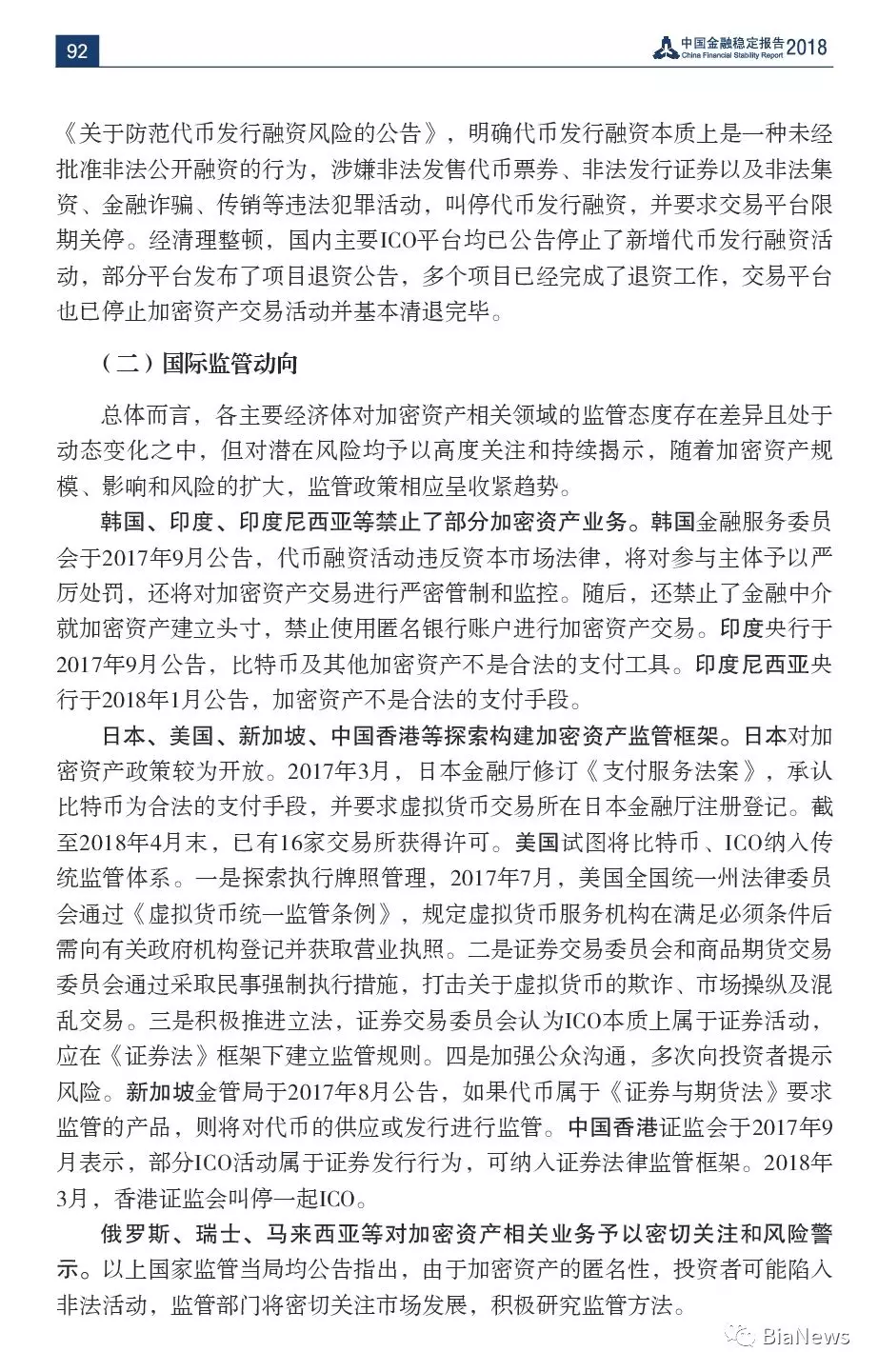 Bianews 报道 近日,中国人民银行发布《中国金融稳定报告(2018)》。