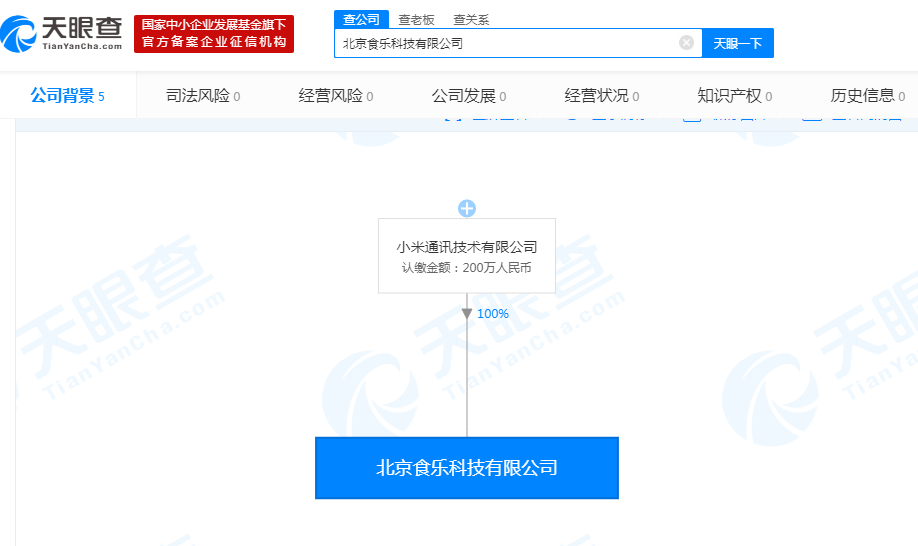 鞭牛士 6月27日消息,天眼查数据显示,6月25日,北京食乐科技有限公司成立,这家注册资本为200万元的公司,经营范围包含“销售食品;餐饮服务”,公司的法定代表人是小米公司联合创始人、总裁林斌。北京食乐科技有限公司的法人股东正是小米通讯技术有限公司,林斌同时任执行董事兼经理。