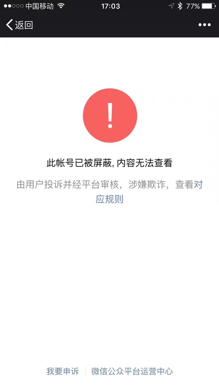 7月5日消息,95后神奇百货CEO王凯歆公众帐号被封,显示帐号被用户投诉,涉嫌欺诈,内容已被屏蔽。