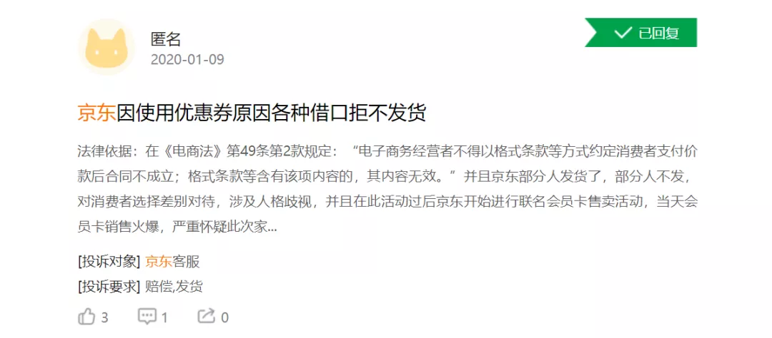 但可以肯定的是,无门槛券被大量使用是确有其事的,京东拦截发货也是存在的。