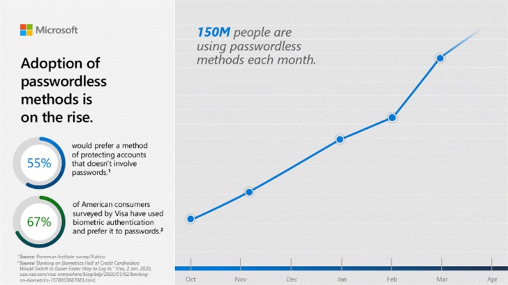 微软:每月有1.5亿人使用无密码登录,自家90%员工已切换