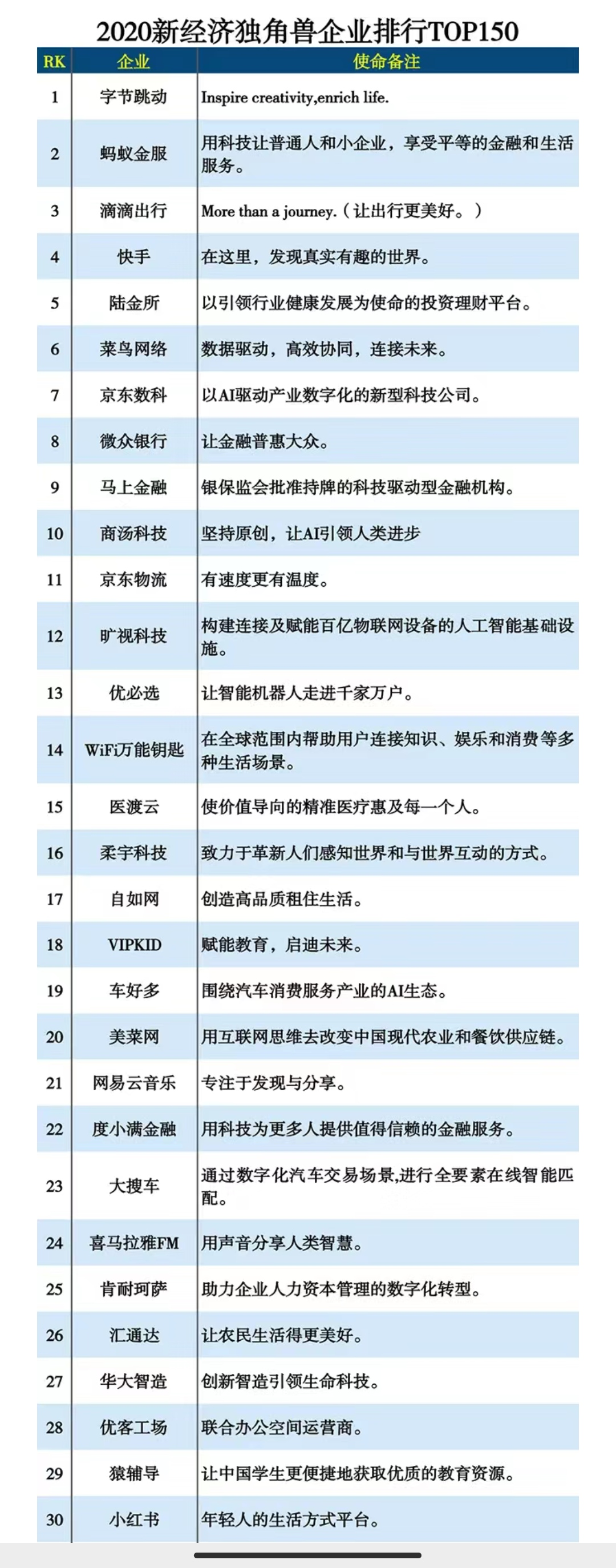 排名第一的字节跳动将在一年内把估值500亿美元的Tiktok分拆在美上市;排名第三的滴滴出行被传考虑最早于2021年上半年在香港上市,估值或超600亿美元,但滴滴随即否认,此前在阿里拍卖网上曾出现某“全球领先的网约车出行平台公司”部分股权拍卖,标的为A轮优先股,可见滴滴管理层和投资方之间对上市存在分歧,但有人确实急了;而排名第四的快手也传出将最快于年内赴港上市,估值约500亿美元。“不是今年,就是明年,后年就晚了。”一位投行人士向燃财经表示,“现在不管巨头,还是刚过10亿美元的独角兽,只要不是押注未来硬科技的,都在抢滩登陆,这可能是移动互联网最后一波上市潮了。”技术红利和人口红利将要消失殆尽,一股持续近十年的浪潮,即将伴随着最后一批独角兽巨头的上市宣告结束,技术与资本的热血故事也将暂时告一段落。“看着人家公司股票翻倍的涨,我有几位前几年的老同事去了跟谁学,分到了一些期权,现在人都已经在北京买房了,这都是命,羡慕不来。”陈明叹了一口气,他所在的某互联网大厂,虽然工资高,但至今没有上市。他早就不想干了,但是公司估值很高,他舍不得手里的期权,“别看少,真上市了能翻好几倍。”疫情肆虐下,全球资产配置都在向股市倾斜,从3月份美股熔断后,各大指数触底反弹,一路上涨,即便经历了8、9月份的震荡,回调了一部分涨幅,但截至目前,纳斯达克指数涨了28.35%,深证成指涨了30.42%,上证指数也涨了9.11%,恒生指数虽然下跌了12.84%,但恒生互联网科技指数涨了40.19%。这让已经上市的新经济公司们狠狠捞了一波油水。依年初至今涨幅来看,多家互联网公司股票涨幅超过100%,如蔚来、人人网、跟谁学、贝壳、京东、拼多多、B站、网易有道、美团点评、小米等,买入以上任一家公司的股票并持有一年以上,都能获得非常高的投资回报。一边在热火朝天的赚钱,另一边却有很多公司错过了好时机,那些超级独角兽们总想着撑到最后,市场会给最高的价码,但是在这个时候,连他们也眼红了,上市,成了摆在他们面前最好的选择。CVSource投中数据显示,2020年全市场新股发行的数量达到1540支,几乎是去年的一倍,其中IPO数量433起,已经超过去年全年的403起,按金额算,今年全年中资企业IPO融资额高达6279亿元,已超去年全年的5986亿元,更何况后面还跟着蚂蚁集团这样的巨兽。众多业内人士预测,A股的这波行情从中芯国际开启,将以蚂蚁集团的上市作为终点。“蚂蚁的体量实在是太大了,上市之后将吸纳一大部分市场资金,到时候投资者手里和市场上都没钱了,牛市可能就会停止。”一位长期研究二级市场的券商人士对燃财经表示。对于这些独角兽来说,越晚上市,就意味着只能吃剩下的残羹冷炙,这就是一场大逃杀,比喻为“抢钱”也不为过,对于中小型新经济企业来说,就算拼了命也要跑到这些巨无霸的前面,不然只有被碾压的下场。即使是已经上市的巨头,也不想放过这波绝佳的市场机会,2020年,在美上市的互联网中概股开启了回港二次上市的浪潮,先是阿里、京东、网易,后是B站、携程、新东方等,既能提振股价,又能增强投资者信心。排队上市的着急,已经上市的也着急,但最着急的还是前几年资本泡沫催生出的那些独角兽,一轮又一轮的融资砸进去,迟迟等不到退出的机会,又不愿意赔本折价卖给别人,对那些几乎已经绝望的投资人来说,2020年的这波行情是他们唯一解脱的机会,甚至还有希望小赚一笔。上述参与过某互联网教育独角兽早期融资的投资人就很焦虑,他曾经为手里的股权骄傲甚至膨胀过,在线教育最火的2018年,有人找上门来要以当时估值溢价30%买他手里的股权,他立马拒绝,“我熬到上市,远远不止这个价格”,可是后来在线教育赛道逐渐冷场,他手里的这些股权也越来越成了堵在心头的一块石头,压得他喘不过气来,直到今年这波行情,他意识到,这可能是唯一的离场机会了。所有人都知道,错过这一次,下一次就不知道猴年马月了,比起疫情之后回归正常的货币政策和市场热度,新经济的创业者们更担心的一点是,未来的资本还会不会青睐他们?独角兽,这是一个曾让无数互联网人心动过的名词,假如一个创始人能把公司做到独角兽级别,那他就跨入了明星创业者的行列,足以在移动互联网大潮中青史留名,但在今天,越来越少的人能意气风发地宣称要将自己的公司做到十亿美金,一个创业者说,活下去就心满意足了。过去,成为一个独角兽公司是很容易的,但现在越来越难。在《互联网周刊》这份“2020中国新经济独角兽企业榜单”中,如果仔细研究,会发现一个有趣的现象:估值最高的这些独角兽没有一家是近三年成立的,最年轻的要属排名第27位的华大智造,从事生命科学与医疗健康领域仪器设备研发,公司成立于2016年4月,而榜单上的绝大部分公司,成立于2013年-2015年,也就是移动互联网最蓬勃发展的那几年。巧的是,2013年-2015年,正是PC时代最后的一波上市高峰,2014年全年,共有31家企业陆续完成IPO,相比2013年的16家几乎翻倍增长,其中阿里巴巴是当之无愧的头号玩家,京东则稍早于2014年1月上市,此外还有陌陌、迅雷、智联招聘、聚美优品等,2013年下半年则是58同城,去哪儿网,500彩票网、汽车之家等。一边是疯狂上市,另一边则是老玩家的谢幕。2014年,陆续有中概股从美国打道回府,这些开启私有化进程的大多是PC互联网时代最先获得资本青睐