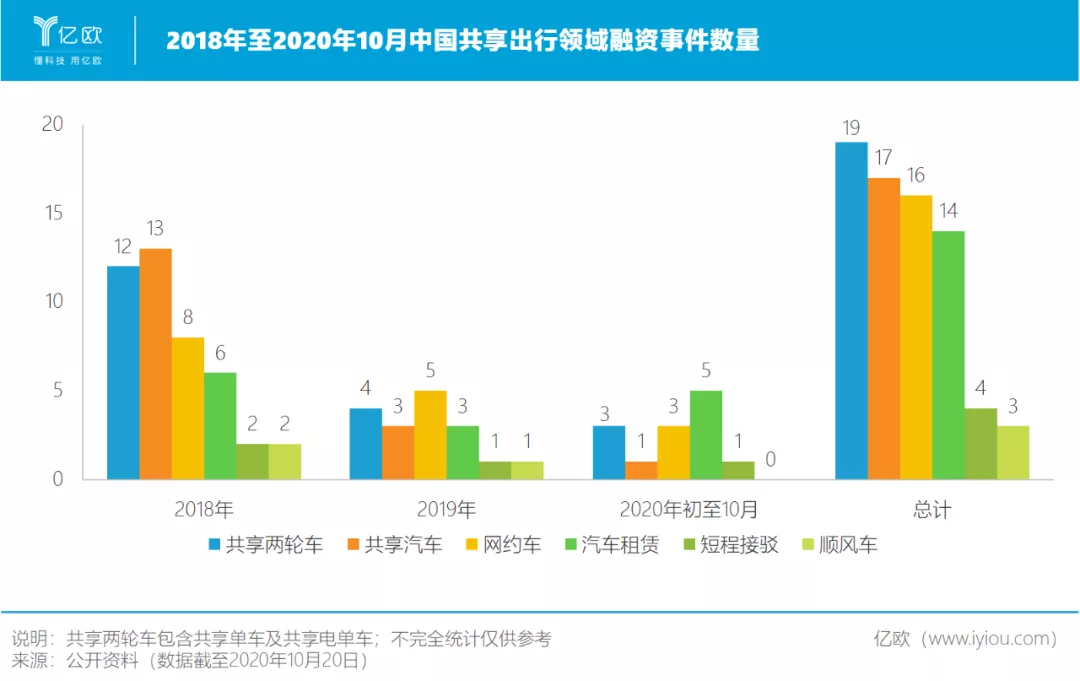 据亿欧不完全统计,近两年来,中国共享出行市场融资总额近600亿元。一个严峻的现实是,整个市场的融资金额在逐年递减。以共享两轮车为例,其从2018年的302.1亿元融资总额,骤减至如今的20.70亿元。