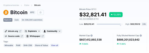 鞭牛士 1月3日消息,昨天,比特币价格站上3万美元并持续上涨,目前已突破32000美元,刷新历史新高,总市值突破6000亿美元,排名超过阿里巴巴。相比较下,2020年年初,比特币价格在7000美元左右。