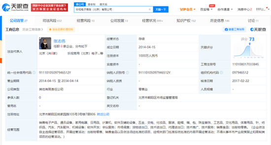 天眼查App显示,乐视电子商务(北京)有限公司成立于2014年4月,注册资本1000万人民币,公司法定代表人为张志伟,公司经营范围包括销售电子产品、通讯设备、家用电器、日用品、计算机、软件及辅助设备等。天眼查司法风险信息显示,目前,乐视电子商务(北京)有限公司所涉及的限制消费令上百条。