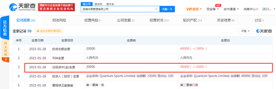 鞭牛士 1月29日消息,天眼查App显示,1月28日,英雄体育管理有限公司发生工商变更,注册资本由原来的2亿人民币增加至4亿人民币,涨幅100%。