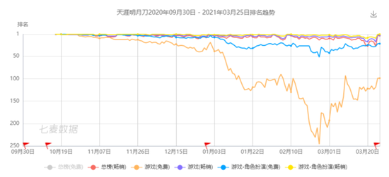 七麦数据显示,去年10月16日上线,改自北极光工作室同名MMORPG端游的《天涯明月刀》仅用了十几个小时,就登上IOS免费榜和畅销榜榜首。