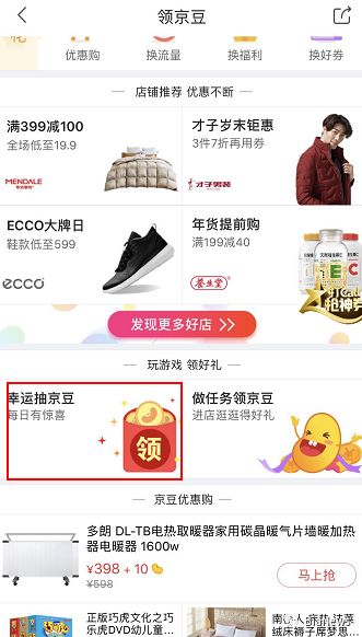 点击领京豆页面的幸运抽京豆版块,就可以进入京豆游戏页面。