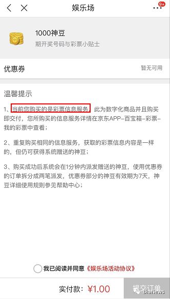 而神豆则可以通过现金购方式获得,1元可以买1000神豆,神豆也可以换成东券用于充话费或购买商品,但比率变成约1000神豆抵8角。不过,购买神豆时会提示购买的是彩票信息服务。