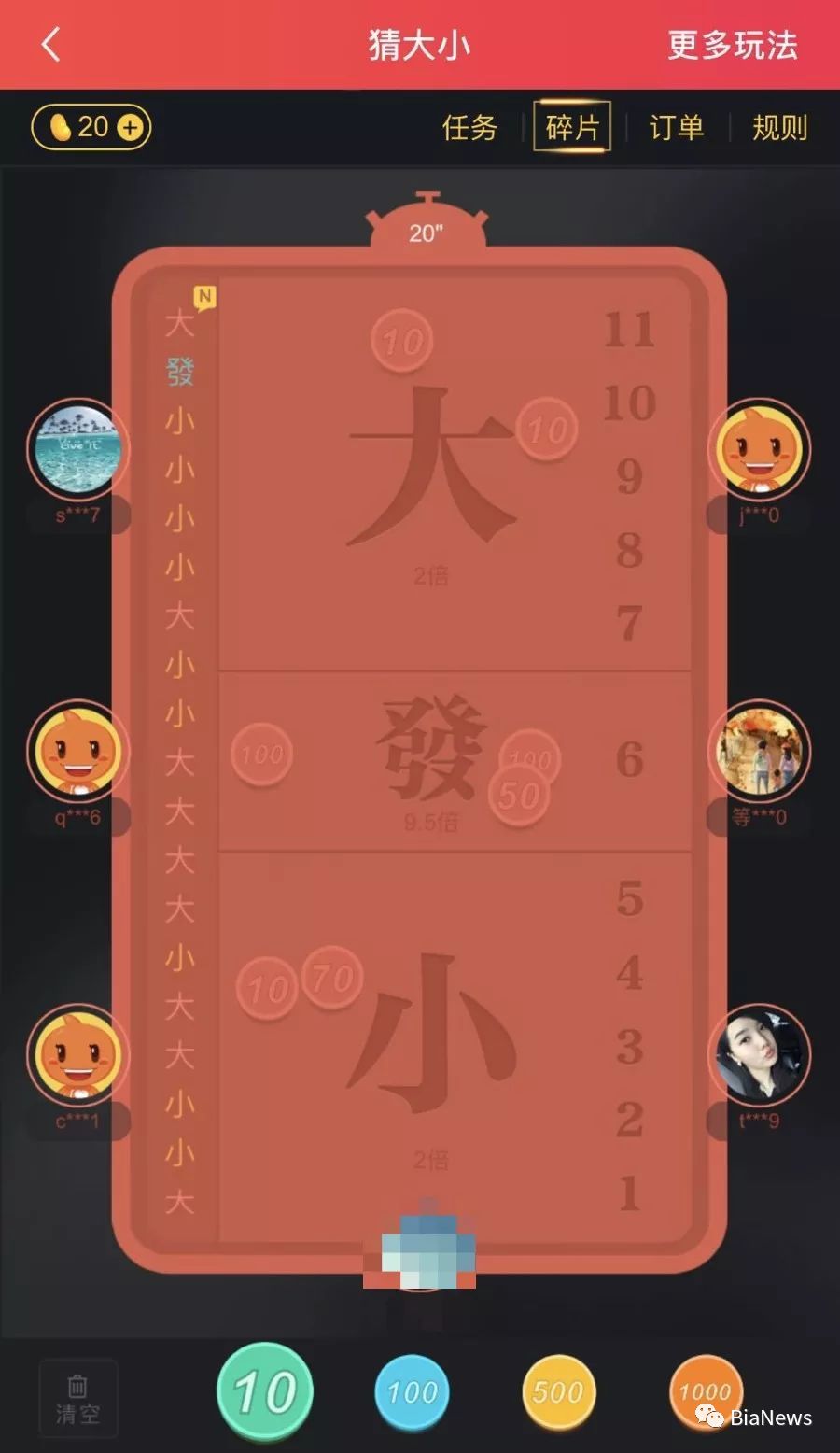 上述文章提到这些游戏每隔几十秒就开一局,猜大小、大转盘、新六六六三个游戏最受欢迎,经常可以看到几十万人同时在线。而赌注也是豆。