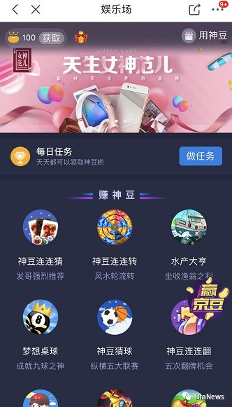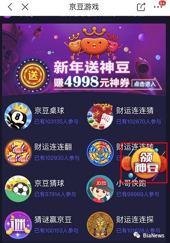 而在京豆游戏页面有另一娱乐场入口,点击领神豆即可进入,这个页面的游戏与京豆游戏类似,只不过押注的是神豆而不是京豆。