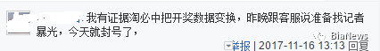 还有人称自己有淘必中操作开奖数据变换的证据,但联系客服后被封号。不少人在贴吧中纠集“受害者”准备维权。