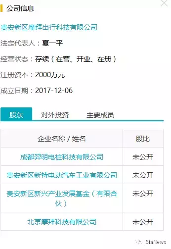 工商资料显示,贵安新区摩拜出行科技有限公司成立于2017年12月6日,法人代表为摩拜单车CTO夏一平。