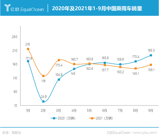 乘联会数据显示,2021年1-9月中国汽车市场乘用车零售量累计达到1448.6万辆,同比增长12%。