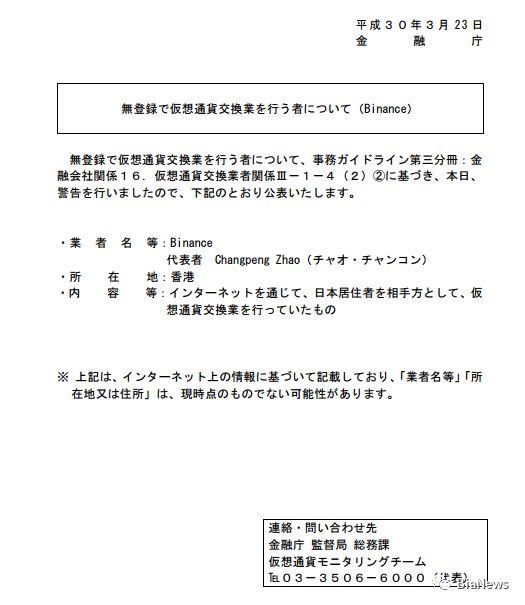 3月23日发函正式警告币安之前,金融厅已经对其警告过一次,这次属于严重警告;