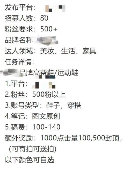 (某品牌方有偿招募“网红”撰写虚假“种草笔记”)