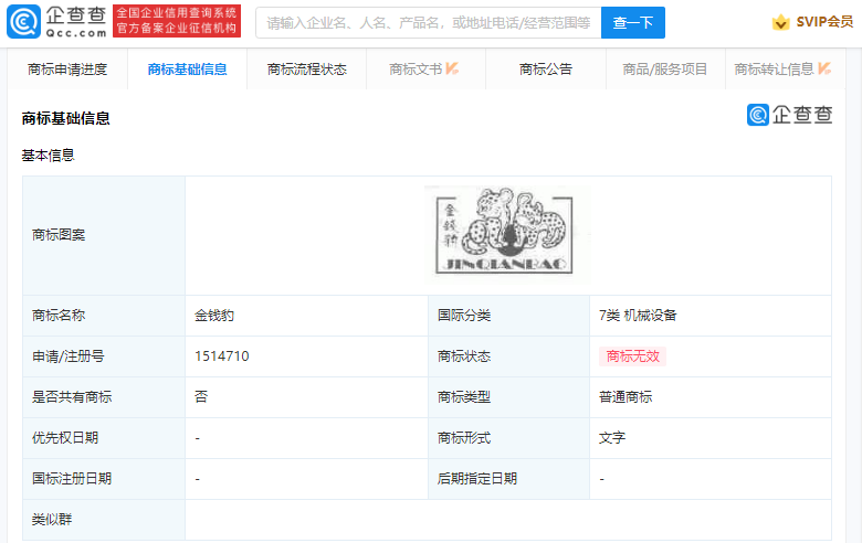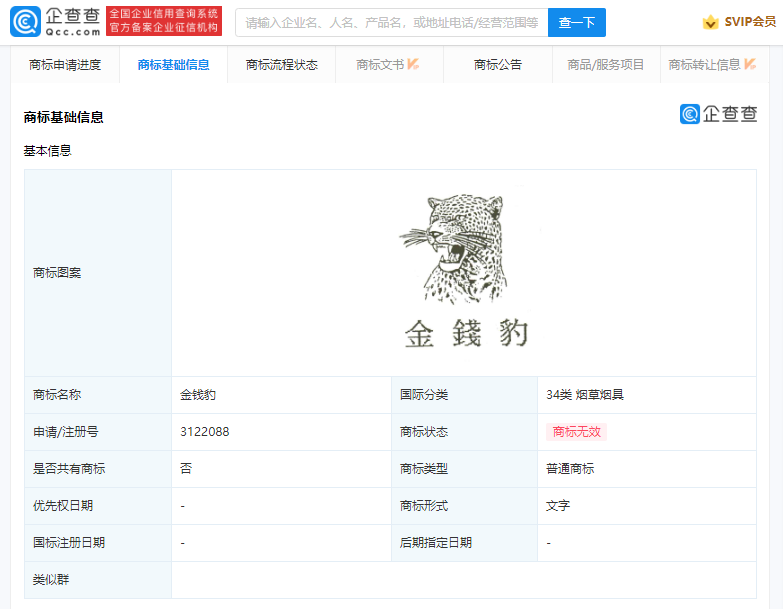 此外,金钱豹相关商标有153个,最新一枚于2021年11月申请。