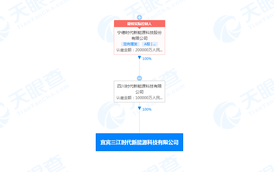 股权穿透图显示,该公司由宁德时代新能源科技股份有限公司间接全资持股。