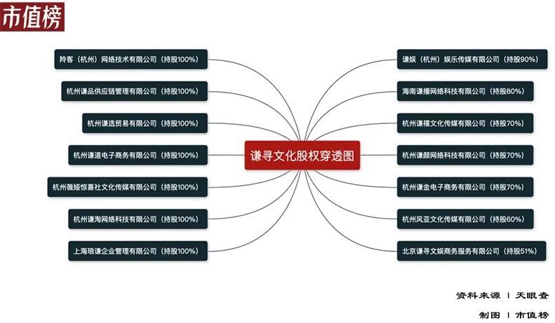 现在,谦寻旗下有谦合、谦娱、谦禧、谦播等子公司,具备内容生产、营销、运营、电商、经纪、IP授权/版权、社群/知识付费等多种业务。