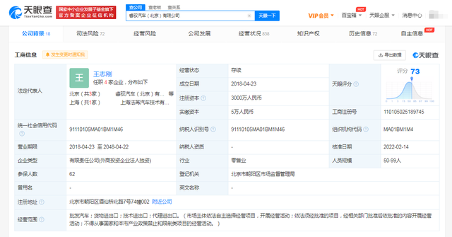 鞭牛士 2月20日消息,近日,睿驭汽车(北京)有限公司发生工商变更,注册资本由1000万人民币增加至3000万人民币,增幅为200%。