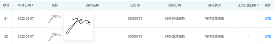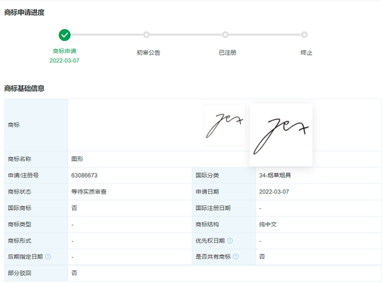 鞭牛士 3月31日消息,信息显示,近日,小米科技有限责任公司再次申请雷军签名商标,国际分类涉及烟草烟具等,商标状态为等待实质审查。此前,小米已完成多个雷军签名商标的申请注册。