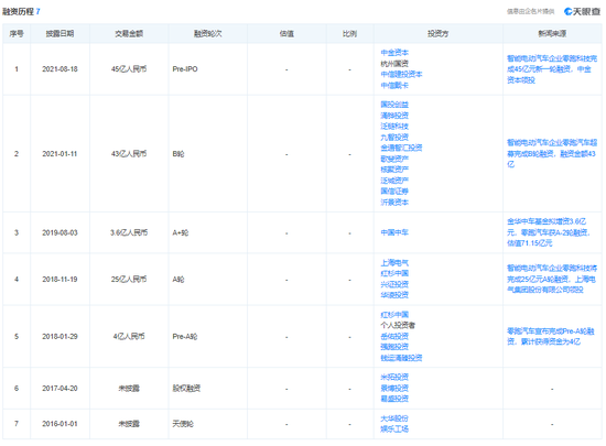 百亿元的资产,离不开公司上市前的数轮融资。据天眼查,零跑汽车在上市前共经历7轮融资,累计金额超百亿元。有消息指出在Pro-IPO轮中零跑的估值达到了220亿元。