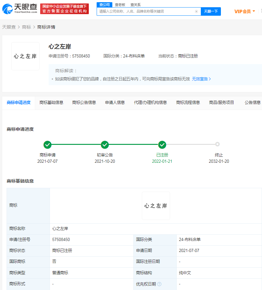 天眼查App显示,江歌母亲江秋莲已申请注册多项江歌相关商标,包括“江歌妈”“心之左岸”“左岸之家”,国际分类涉及食品、服装鞋帽等,目前,“江歌妈”商标状态为等待实质审查,“左岸之家”商标被驳回,“心之左岸”商标已于今年1月份注册成功。