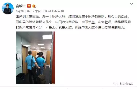 有时候,俞老师这样的大BOSS居然还像普通老百姓一样,去北京南站排队上厕所,因急于大解而发微博投诉。
