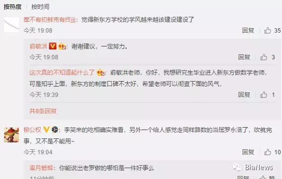 可是,网友们给俞老师提出了很多建议,如新东方的学风越来越该建设建设了,俞老师虚心接受。