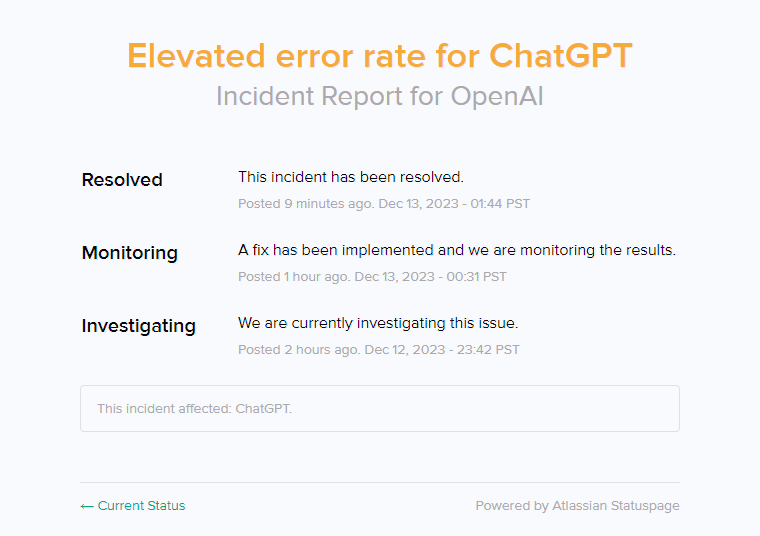 OpenAI回应ChatGPT错误率飙升:问题已修复