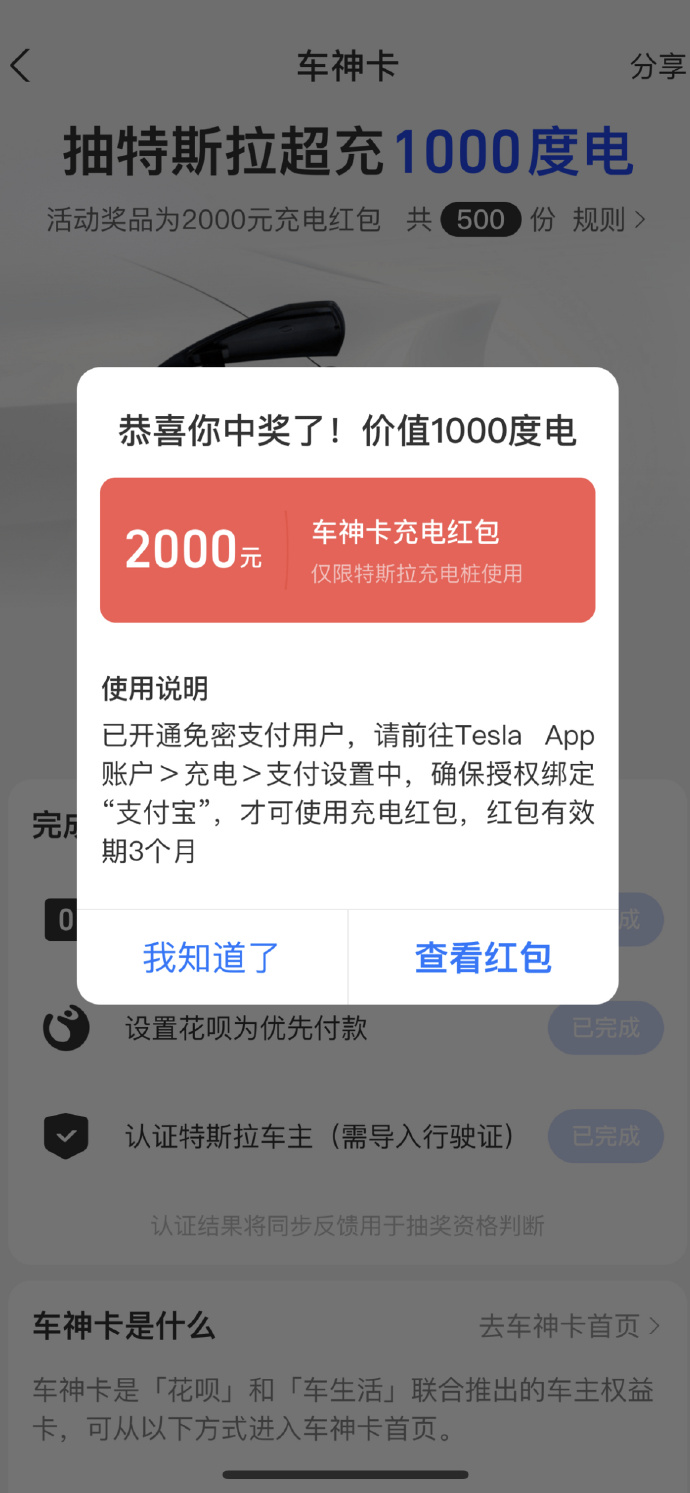 花呗送特斯拉车主1000度电:没发到手,等于没有