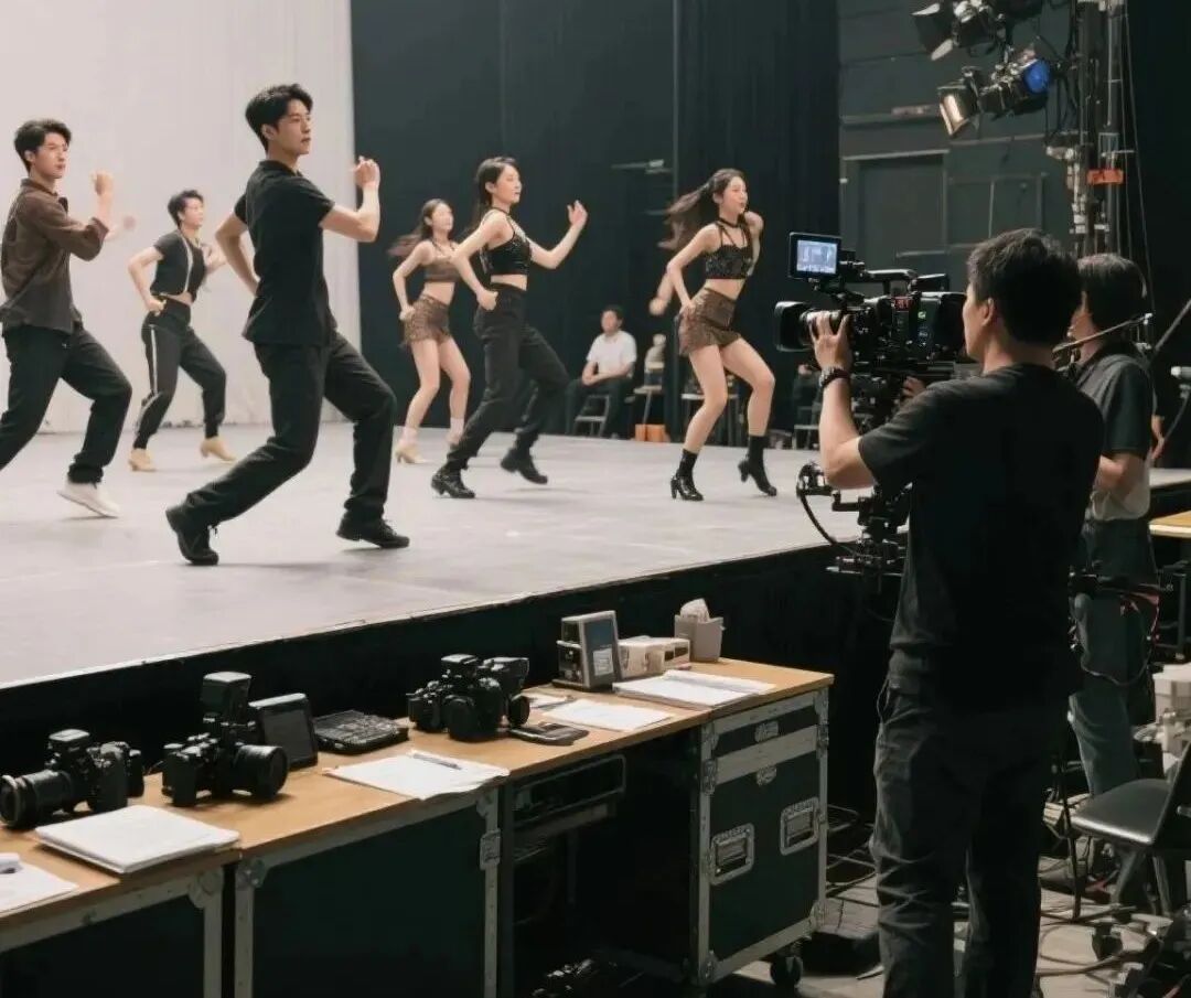 过去团播现场相对简陋,配置大多只是纯色背景、固定灯光和单一机位。四五个主播按虚拟礼物点播顺序,轮流登场表演舞蹈,内容和形式高度雷同。