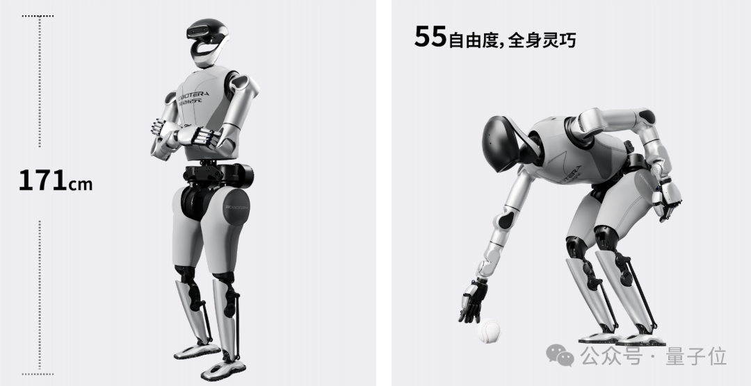 而且这还是个大尺寸双足人形机器人,它身高足足有171cm、体重65kg。在具身智能机器人领域,直接就是全尺寸里一步到位标准。
