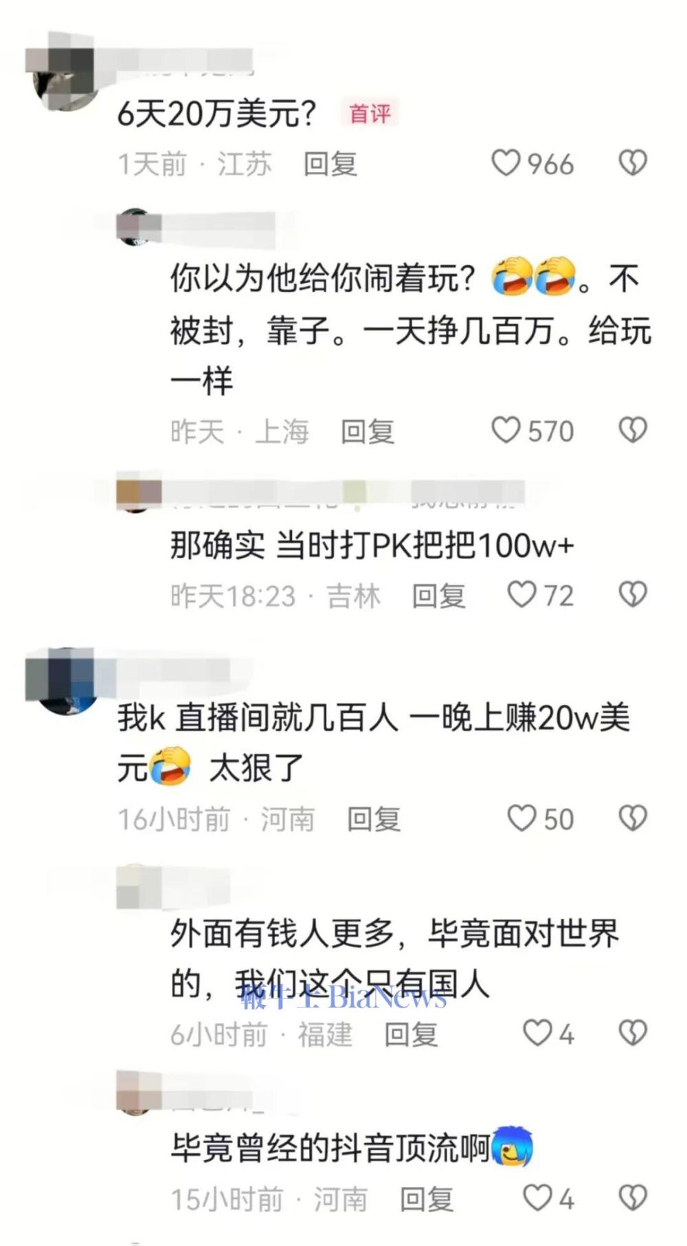 而且铁山靠直播时亲口透露,他在TikTok直播才6天,就已经赚了20万美元,换算成人民币是140多万,多少普通人几十年才能赚到这个数。