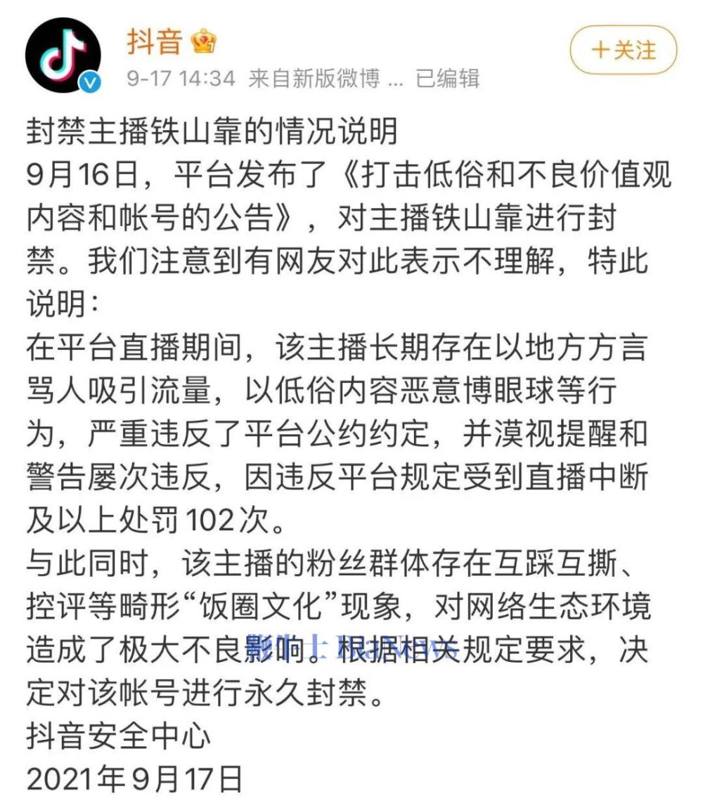 话又说回来,铁山靠当年为什么会被抖音永久封禁?