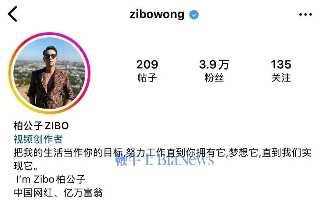 他在外网直接给自己包装成了美女形象,账号主页还贴了“中国网红”、“亿万富豪”的标签,目前粉丝数量达到了3.9万。