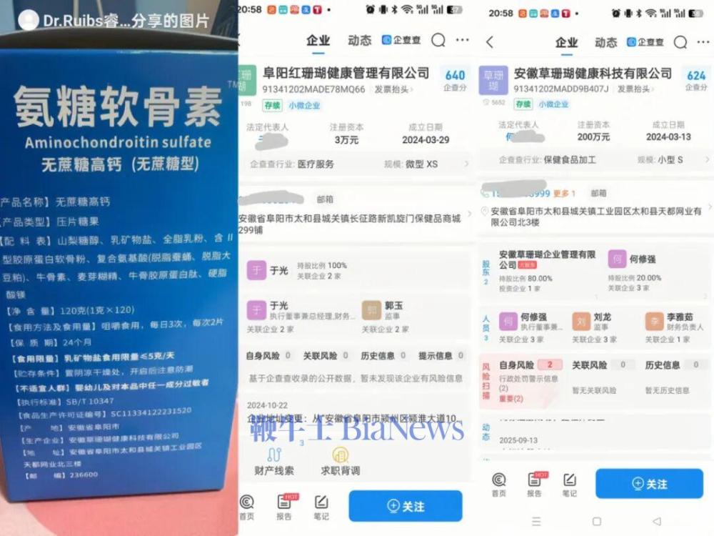 睿博士店铺上线的保健食品的生产厂家,则为安徽某健康科技有限公司。而企查查显示,该公司注册于2024年3月,注册资金只有区区200万元,且因为生产经营不符合标准、虚假广告等,今年以来遭遇多次行政处罚。
