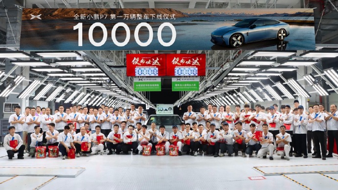 今日,小鹏汽车官方宣布,全新小鹏P7第一万量整车下线。