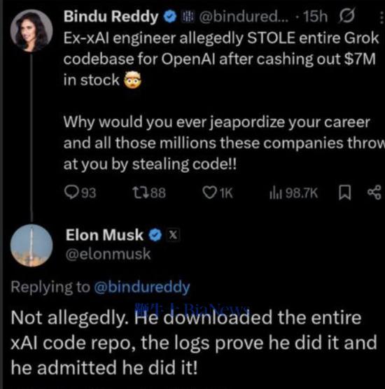 指控窃取商业机密 这一次,xAI指控OpenAI有预谋地挖角自己的核心员工,包括多位掌握Grok大模型源代码以及数据中心战略计划的员工,这些技术可能让OpenAI获得巨大的产品竞争优势,同时节省数十亿美元的数据中心运营成本。 xAI在诉讼文件中声称,OpenAI存在“令人深感不安的模式”和“战略性行动”,故意诱导这些员工违反保密协议,试图获取xAI的源代码、数据中心启动的运营优势、技术进步和战略业务计划。以在激烈的先进AI开发竞争中谋求不公平优势。 马斯克对这起诉讼的评论是:忍无可忍,无须再忍。他在自己的X平台上解释说,“我们已经向他们发送了多封警告函,但他们继续在欺骗作弊。在尝试其他所有方法没有结果之后,诉讼是我们唯一的选择。” 显然,OpenAI完全不认同他的这些指控。奥特曼领导的OpenAI发表声明,否认自己存在任何不当行为,称这起诉讼只是“马斯克对OpenAI持续骚扰”的最新篇章,一切都是为了马斯克以及他自己的营利性AI公司的利益。 不过,xAI在诉讼文件中详细列出了他们指控OpenAI的原因,列举了三名被OpenAI挖角并窃取商业机密的员工案例,其中包括两名可以接触到核心技术的工程师李学晨(音译 Xuechen Li)和吉米·弗莱彻(Jimmy Fraiture),还有一位了解公司数据中心战略的前高管。虽然诉讼文件涂抹了他的名字,但外界猜测xAI指控的极有可能是前CFO利博托雷(Mike Liberatore)。 下载整个代码库 这起诉讼可以追溯到一个月前的另一起诉讼:xAI在8月底起诉前员工李学晨非法窃取商业机密。诉讼文件指控称,李学晨在7月25日将公司机密文件复制到个人设备,并出售公司股票套现了700万美元,三天后他从xAI离职,在8月19日加入OpenAI工作。 马斯克在X平台上愤怒指责,李学晨在离职前下载了xAI的整个代码库!登录日志证明了这一点,而他也承认了! 据领英平台信息显示,李学晨曾经在谷歌工作,去年斯坦福博士毕业加入xAI。仅仅一年时间,他就拿到了价值700万美元的股票以及不菲的年薪。AI行业的人才成本真是昂贵。相比之下,Meta给行业顶级技术人才开出上亿美元的几年合同也就可以理解了。 这个月初,xAI已经成功申请到临时禁制令,暂时禁止李学晨在OpenAI以及任何AI公司工作,并要求他交出所有个人设备、云账户以及数据存储设备进行调查,取证之后必须删除与xAI相关的所有数据。正式听证会将在10月7日进行。 除了李学晨之外,xAI还起诉了另一名工程师弗莱彻,同样在离职之前拷贝了技术文件到个人设备上:他也复制了Grok聊天机器人(19.320, -0.70, -3.50%)的源代码,加盟的也是OpenAI。 xAI还指控一名财务部门高管向OpenAI透露了xAI数据中心部署的核心机密。诉状中称,今年7月,马斯克的律师发函指责其违反保密协议之后,这位前高管用一句带生殖器的脏话回复。(存有邮件证据) 外界猜测这位高管是xAI的首任CFO利博托雷,因为他刚刚加入了OpenAI。领英平台资料显示,利博托雷加入xAI前曾在高盛以及私募股权巨头KKR工作数十年并担任了董事总经理,是一位在投资与科技领域拥有丰富经验的资深管理人士。按照这样的资历,很难理解他用脏话回复律师的正式邮件。 马斯克会接受和解? 田纳西州数据中心是xAI的核心竞争优势。马斯克计划在这里使用10万个英伟达最顶级的GPU(H100以及下一代B200),组建一个算力前所未有的AI超级计算集群。而OpenAI刚刚宣布获得英伟达未来1000亿美元的战略投资,也计划组建自己的超级算力中心。xAI的数据中心GPU部署技术无疑具有重要意义。这正是马斯克暴怒的原因之一。 xAI在诉讼中写道,OpenAI违反了联邦和加州法律,“他们在受到更优秀创新者威胁时显然不择手段,包括掠夺并盗用xAI的技术进步、源代码和商业计划。”他们窃取的是“优于ChatGPT和其他竞争产品功能的尖端AI技术,可能为OpenAI节省数十亿美元研发费用和多年努力”。 xAI还不忘提到双方的最新大模型竞争,指责OpenAI的“窃取信息”行为是因为Grok模型(特别是最新发布的Grok 4)性能匹敌甚至超过OpenAI模型,威胁到了OpenAI的市场主导地位。 按照惯例,诉讼随后将进入密集的证据展示阶段,涉及大量文件交换和证人取证。xAI可能寻求临时限制令或初步禁制令,阻止前员工在OpenAI从事特定人工智能项目,或禁止OpenAI使用涉嫌窃取的机密。值得一提的是,xAI此次诉讼的首席律师是美国前专业商标局局长。 这起诉讼对两家公司都有着重要意义。若成功证明商业机密盗窃,xAI可能获得巨额赔偿和禁制令,阻止OpenAI使用涉嫌窃取的机密或雇佣特定前xAI员工,有效阻止自己的核心员工流失。如果xAI赢得诉讼,OpenAI不仅是声誉受损可能面临数十亿美元的赔偿,还会面临限制技术开发或招聘关键人才的禁制令,并可能导致与苹果和微软等伙伴关系紧张。 因此,OpenAI也会全力以赴应对这一诉讼。通常来说,此类高规格诉讼更有可能达成庭外和解,支付一笔赔偿并承诺不再挖角,避免持续数年的法庭诉讼以及公司声誉受损。不过,马斯克或许要的不是钱,而是一口气。 贪婪引诱窃密犯罪 值得一提的是,这类诉讼在硅谷已经是屡见不鲜。加州并没有竞业禁止协议,人才可以自由跳槽,这是硅谷科技技术创新与自由竞争的动力来源。在AI时代,精英人才的争夺更是趋于白热化,挖角成本也日趋疯狂,Meta这样的巨头甚至直接开出几年数亿美元的天价合同从OpenAI和谷歌挖人。 但即便加州没有竞业禁止协议,离职员工