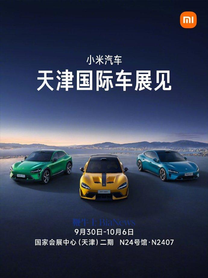 小米汽车宣布全家族产品将参与天津国际车展,包括小米SU7、小米SU7 Ultra和小米YU7。