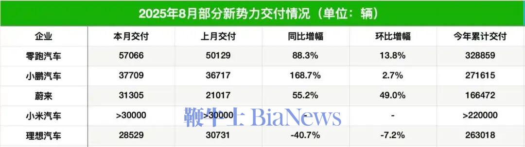 3月,零跑交付37095 台车,首次拿下新势力单月销冠;4 月首次踏入月交付 40000 台大关、7 月首次破 5 万、9 月预计破 6 万…
