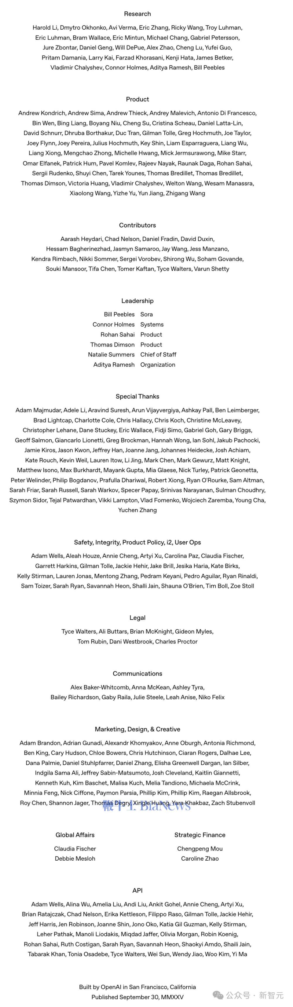 在Sora 2官博最后,OpenAI放出了所有参与的成员名单,阵容超豪华。