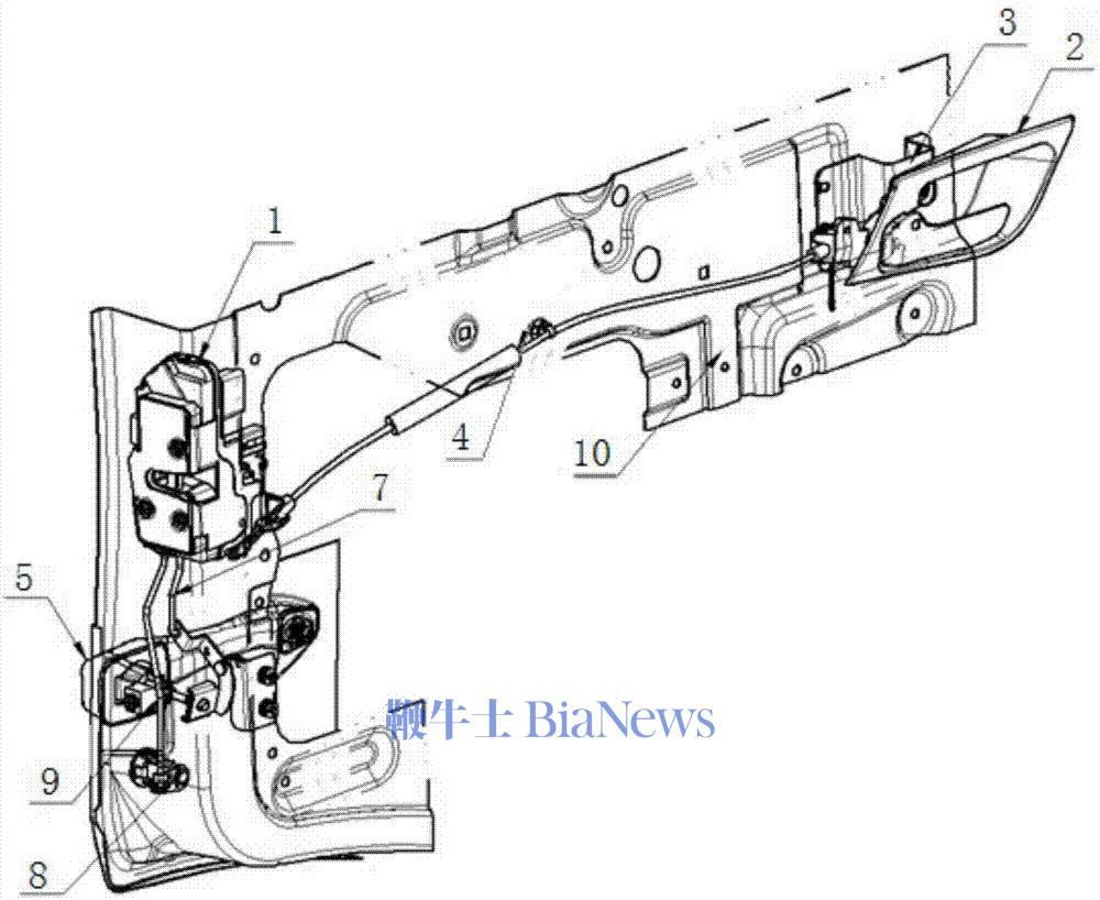 注意啊,上头说的这些机械释放功能,说的可不是门把手上的可活动机械部件( 比如小米 YU7 的机械翻盖和特斯拉 Model 3 手动外拉把手 ),而是车门里面类似下图这样的能够通过物理方式打开车锁的拉杆。