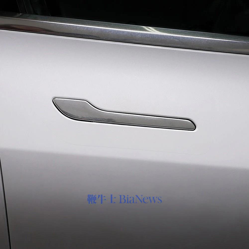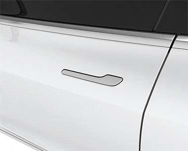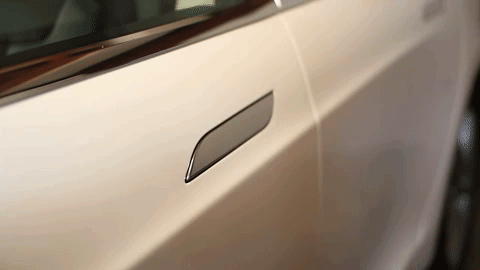 好,那我接下来要考考大家了,接下来出现的这些门把手,它们符不符合新国标。先来个难度低一点的哈,这个,特斯拉 Model 3 的门把手。