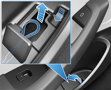 车内的门把手同样也得具有机械释放的功能,并且必须无结构件遮挡,直观可见,只能放在咱们手可以轻松够到的这个灰色区域里面。