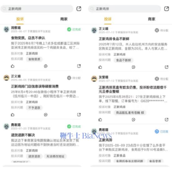 在黑猫投诉上,与正新鸡排相关的投诉达到了1338条,大多客诉也都集中于食材不新鲜和有卫生问题。从卫生不达标、使用过期原料、老鼠出没到今年的食材生蛆,正新鸡排的口碑早已滑坡。同时,《BUG》栏目也注意到,正新鸡排鲜有对整改措施进行披露,也几乎在官网、公众号等平台上找不到对食品安全的声明和通报。